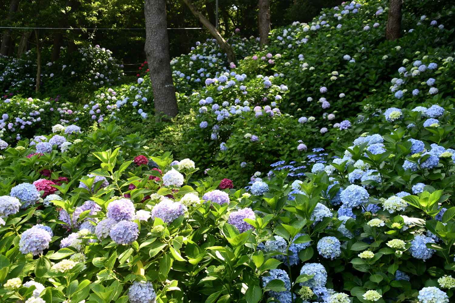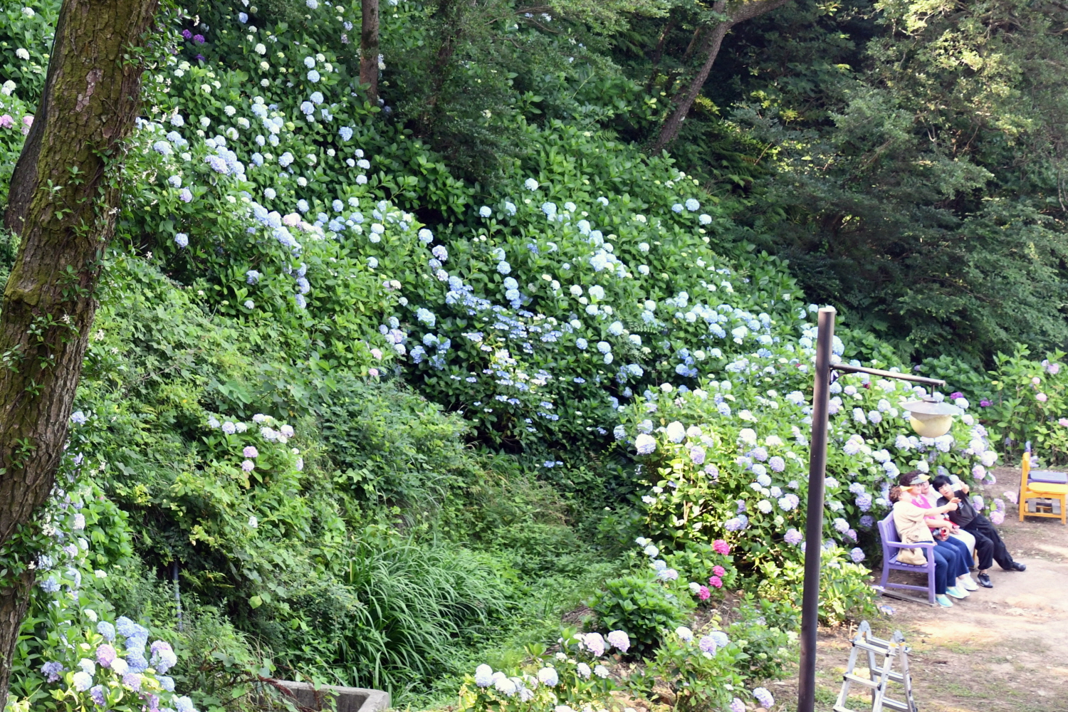 제주 혼인지나 태안 팜카밀레의 규모 큰 수국정원을 본 눈에 태종사의 수국은 많이 빈약했습니다. 오르막에서 내려다보면 한눈에 다 보일 정도로 규모가 작았습니다.