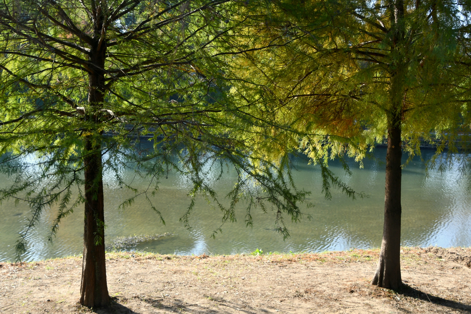 늦도록 이어진 더위 때문이리라, 이곳 남녘은 여전히 나뭇잎이 푸르다.