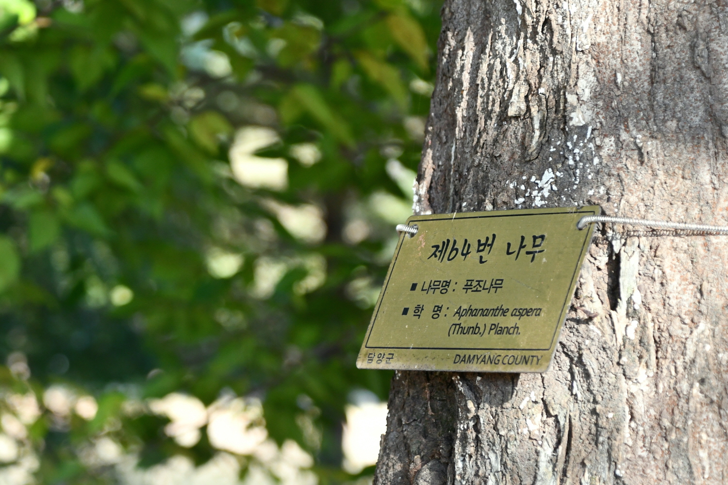 푸조나무가 주종이며 그 외 팽나무 느티나무 벚나무 서어나무 등이 섞여 있다.